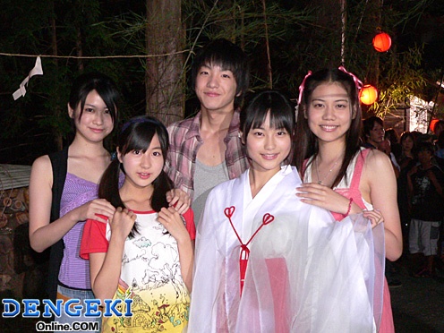 左から飛鳥凛さん(“園崎魅音”役)、小野恵令奈さん(“北条沙都子”役)、前田公輝さん(“前原圭一”役)、あいかさん(“古手梨花”役)、松山愛里さん(“竜宮レナ”役)。
